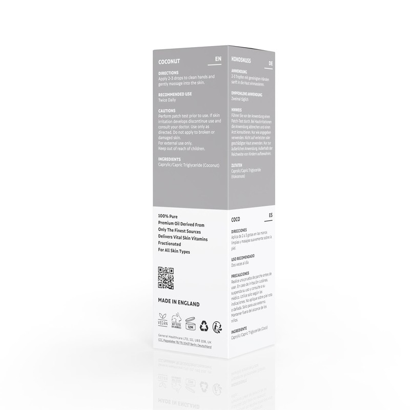 Introducing our delightful addition to the esteemed skincare oil range - Dermavitamins Coconut Oil. This vegan-friendly oil is meticulously crafted to the highest standards, 100% pure, and fractionated, suitable for all skin types. Derived from coconut kernels, our Coconut Oil is a testament to purity. Carefully extracted and free from any animal-derived ingredients, it aligns with our commitment to vegan-friendly, ethical products. We take immense pride in delivering not only effectiveness but also ethical sourcing and environmental consciousness. Fractionated for optimal performance, our Dermavitamins Coconut Oil offers a lightweight and non-greasy formula. The fractionation process removes solid components, leaving behind pure liquid oil, ensuring easy absorption and deep hydration without heavy residue. Renowned for exceptional skincare benefits, Coconut Oil is rich in nourishing fatty acids and antioxidants, providing moisturization and replenishment to the skin. Its lightweight texture suits all skin types, delivering hydration without clogging pores. Furthermore, Dermavitamins Coconut Oil elevates your skincare routine in multiple ways. Use it as a moisturizer to hydrate the skin, as a gentle makeup remover to dissolve stubborn cosmetics, or as a hair conditioner to nourish and strengthen your locks. Beyond skincare, Coconut Oil serves as a natural treatment for dry and damaged hair, restoring moisture, promoting shine, and reducing frizz. Whether you have curly, straight, or textured hair, this oil is a fantastic addition to your hair care routine. Enhance your skincare and hair care regimen with Dermavitamins Coconut Oil - 30ml, an essential part of our acclaimed range. Experience the power of nature combined with our dedication to purity and ethics. Whether you seek a moisturizer, makeup remover, or hair conditioner, our vegan, 100% pure, and fractionated Coconut Oil is the perfect choice for achieving nourished, healthy-looking skin, and hair.