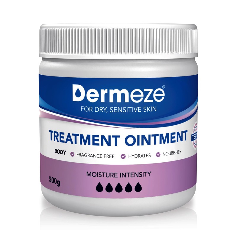 • Dermeze Ointment hydrates and seals in the skin's own moisture, providing soothing relief to very dry, sensitive, and itchy skin.