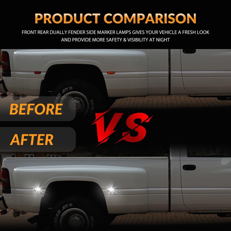 - EASY INSTALLATION: Plug and play, no wiring or modification, no damage to the original housing. Simple upgrade only in 15 minutes or less. Perfect replacement for the OEM dually fender side marker light.