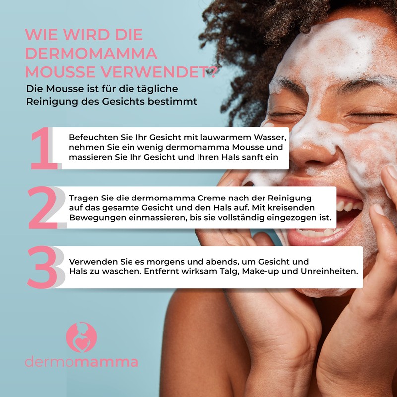 DERMOMAMMA | Gesichtsreinigungsmousse, mit Hyaluronsäure, Vitamin E, Roter Weinrebe, pflanzlichen Tensiden, schützt die Barriere, reinigt sanft, geeignet für Schwangerschaft und Stillzeit - 150ml