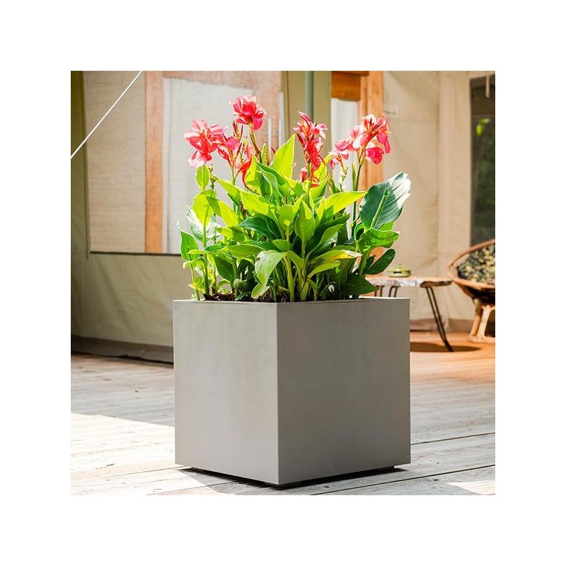 Deroma Millennium Series 15” Cube Planter | Lightweight & Durable Plastic | Indoor or Outdoor Pots for Plants | Includes Water Reserve & Drainage Plug | Sandstone