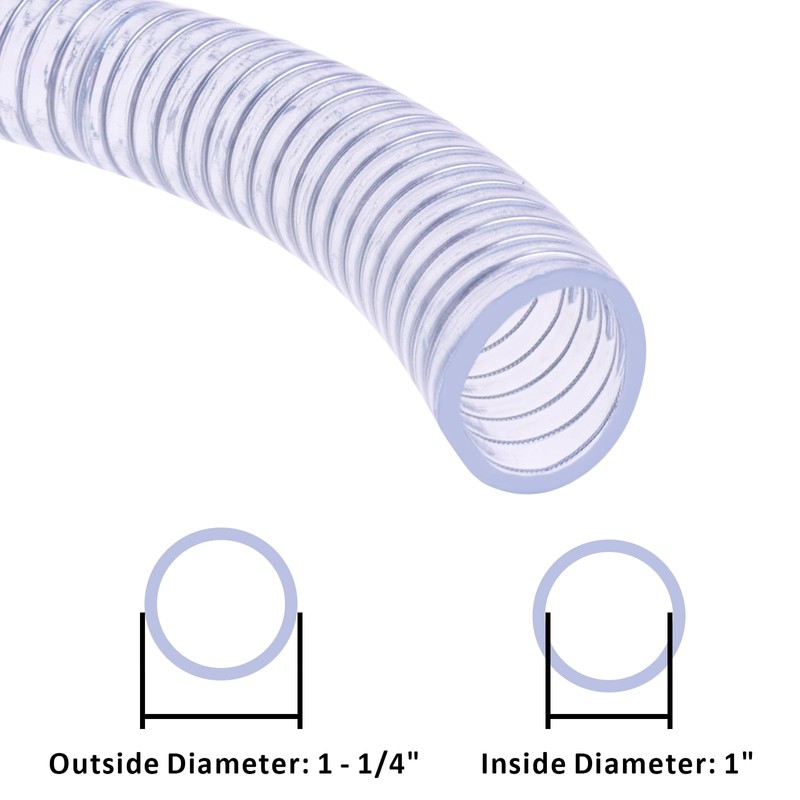 - Size: 1 inch ID x 1-1/4 inch OD, 5 feet length, with 2 Stainless steel hose clamps.