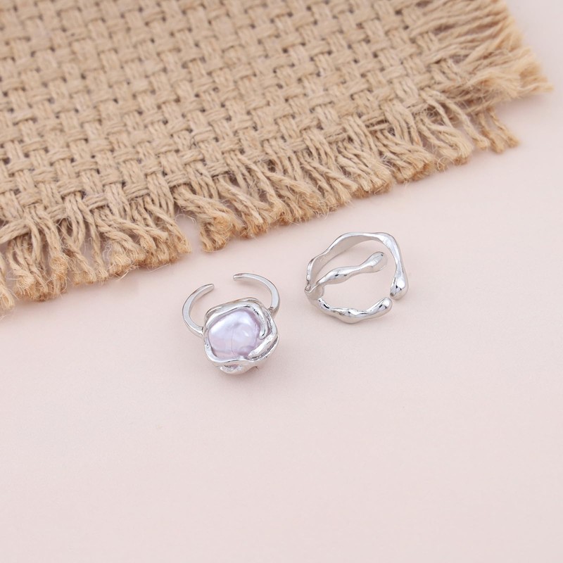 Dervivea Minimalist Silver Irregular Open Ring Baroque Pearl Rings Adjustable Irregular Ring Large Square Pearl Ring Open Adjustable Pearl Ring Geometric Finger Ring Set Jewelry for Women 2Pcs