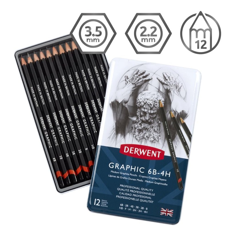 - Contents: 1x Set of 12 Graphic Medium Graphite Pencils (6B, 5B, 4B, 3B, 2B, B, HB, F, H, 2H, 3H and 4H), 34214