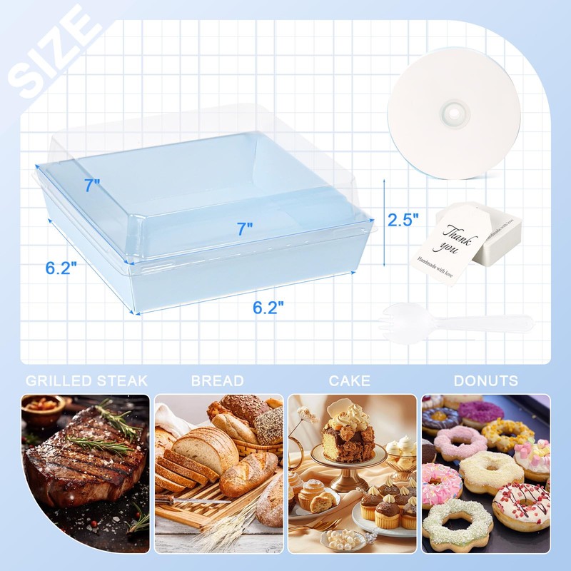 DERZIFUN DERZIFUN Blue Charcuterie Boxes with Clear Lids - Set of 50, 7"x7"x2.5" Disposable Food Containers with Lids, Bakery Boxes for Swiss Roll, Sandwich, Strawberries, Slice Cake, Cookies