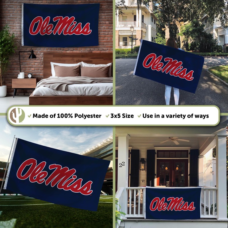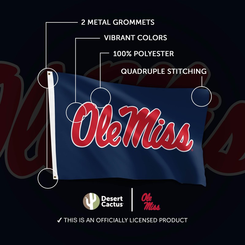 Desert Cactus University of Mississippi Flag Rebels Ole Miss U of M Banners 100% Polyester Indoor Outdoor 3x5 feet Flags (Design X)