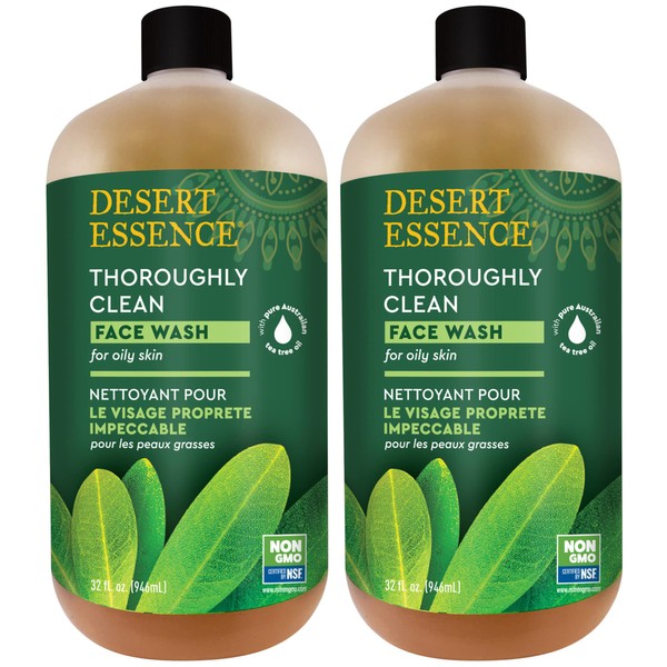 Desert Essence Thoroughly Clean Face Wash - Original - 32 Fl Oz - Pack of 2 -Tea Tree Oil -For Soft Radiant Skin - Gentle Cleanser - Extracts Of Goldenseal, Awapuhi, & Chamomile Essential Oils