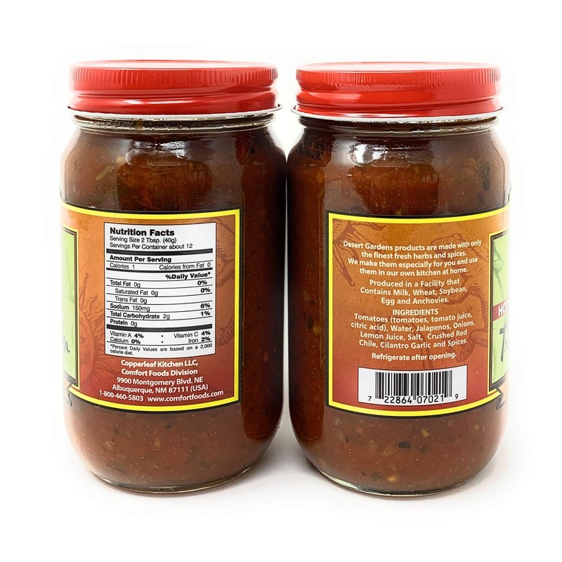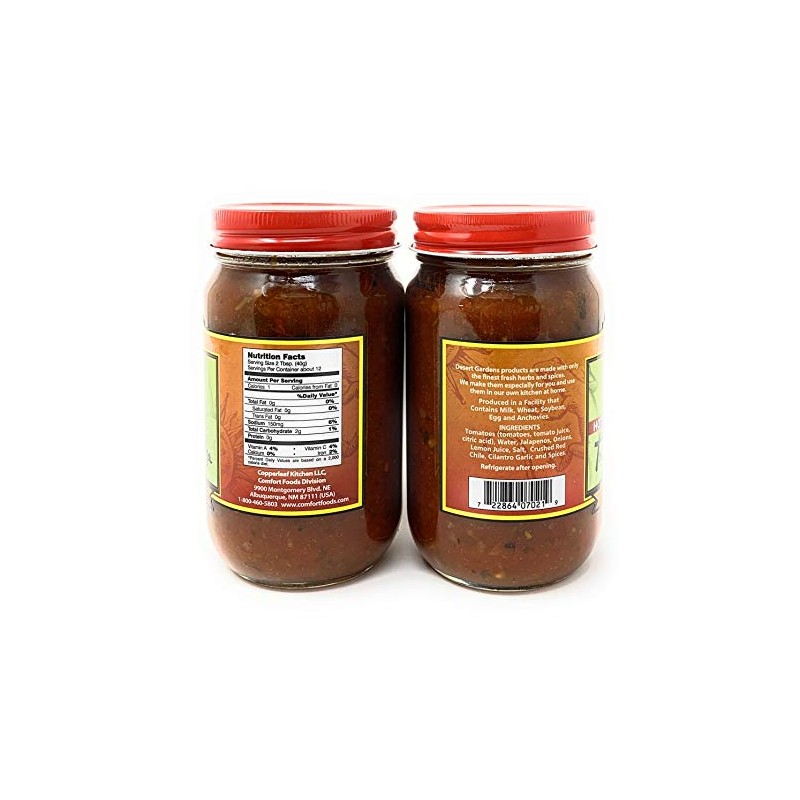 Try our amazing and flavorful hot traditional salsa! Packed with amazing flavors for your enjoyment. Whether you are hosting a party or just having a snack, impress friends and family with your culinary flavors! This salsa will tantalize your taste buds with its unique flavor profile. Desert Gardens products are made with only the finest fresh herbs and spices. This product is friendly for low-carb, low calorie, Keto, low fat, low sodium, and vegan diets. Open a jar and a bag of chips and enjoy! Add on top of Tacos, Quesadillas, Enchiladas, Taquitos, Mexican style eggs, Burritos, Nachos, Fajitas, ect. Simple yet Satisfying!