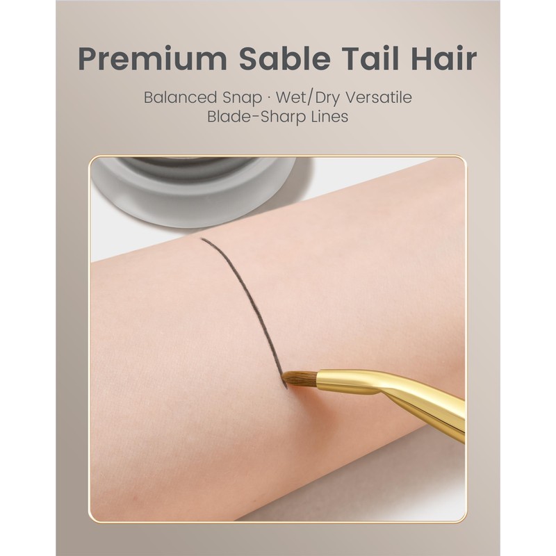 - ✒️ Ergonomic 30° Angled Ferrule provides optimal wrist positioning for controlled application, ideal for creating winged eyeliner and defined brow tails with surgical precision