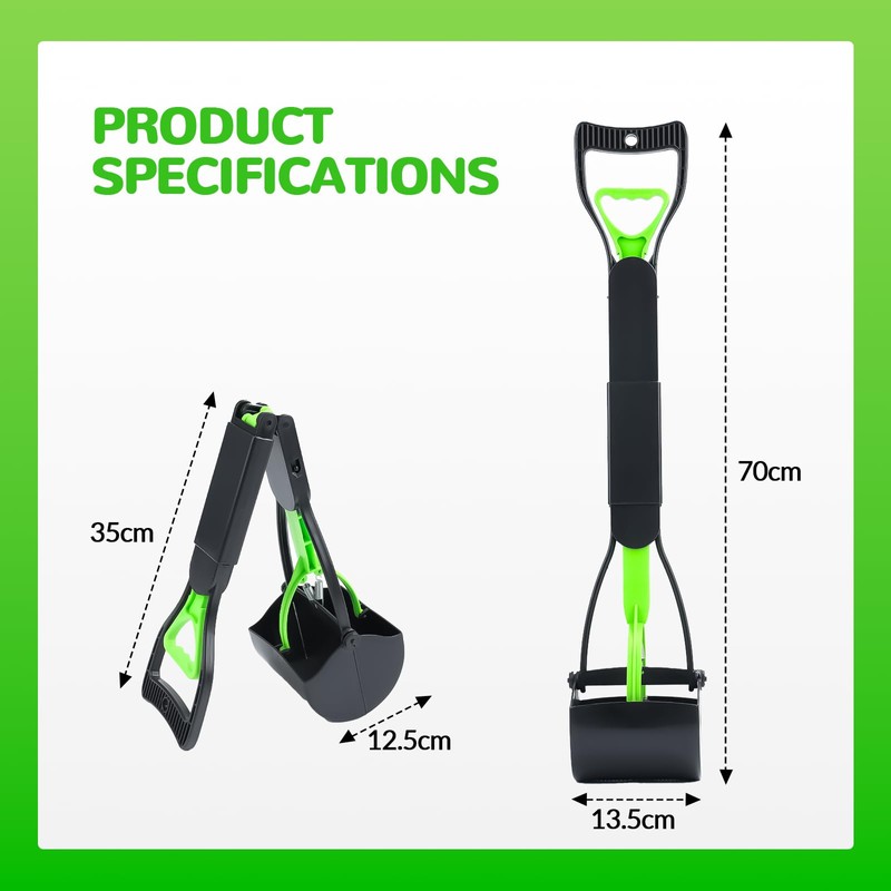 - 28 inches length pooper scooper keeps your hands and nose away from messes and odors. Less bending and squatting! The long-handle pooper scooper ensures that most people don't have to bend over to clean up the waste