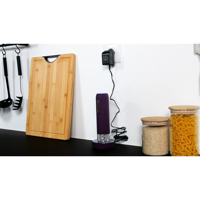 • Dimensions of corkscrew: 21 x 5 cm. Charging cradle diameter: 9 cm. Charger features: AC 230 V 50 Hz - 150 kHz to 30 MHz. This manual is in French standards RoHS and TÜV. Warranty: 2 years