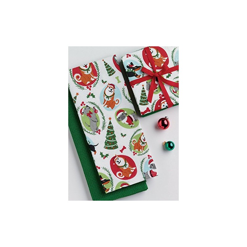 Design Imports Kitchen Towel Set of 2 Holiday Santa Paws Kitty or Dog Design (Holiday Pups)