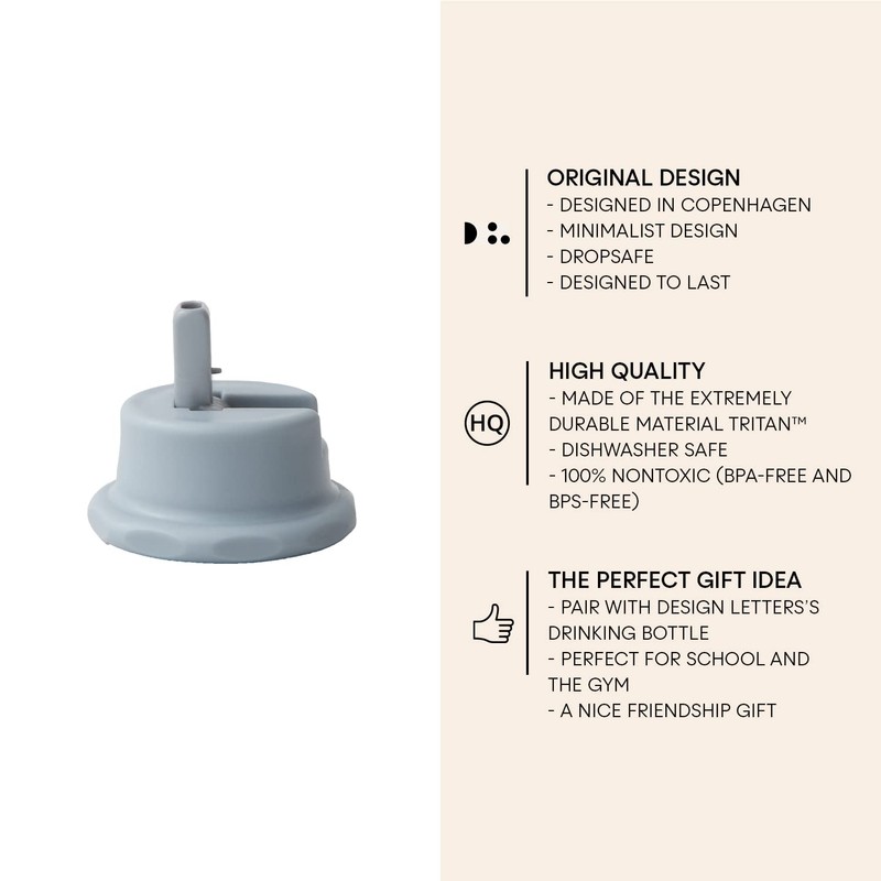Design Letters Sports lid (Grey) - BPA-free and BPS-free, Nordic Design, Integrated straw, Easy to open and close, Ideal for fitness, work or on the go, Fits 500 ml and 330 ml water bottles