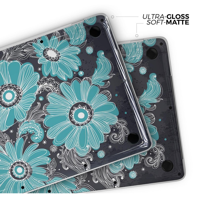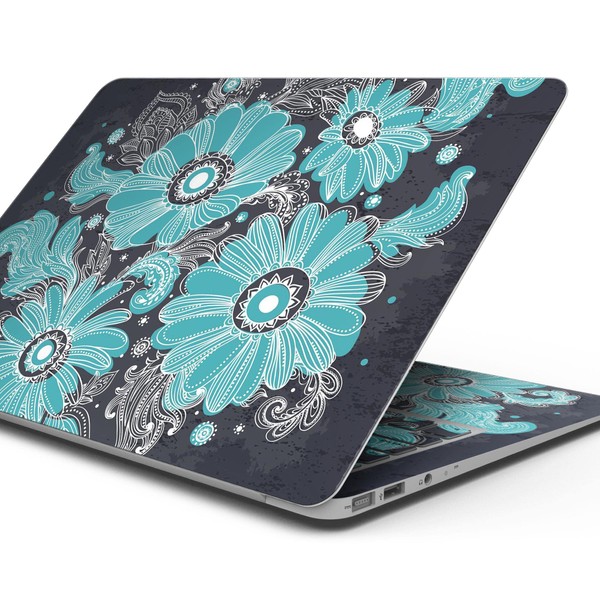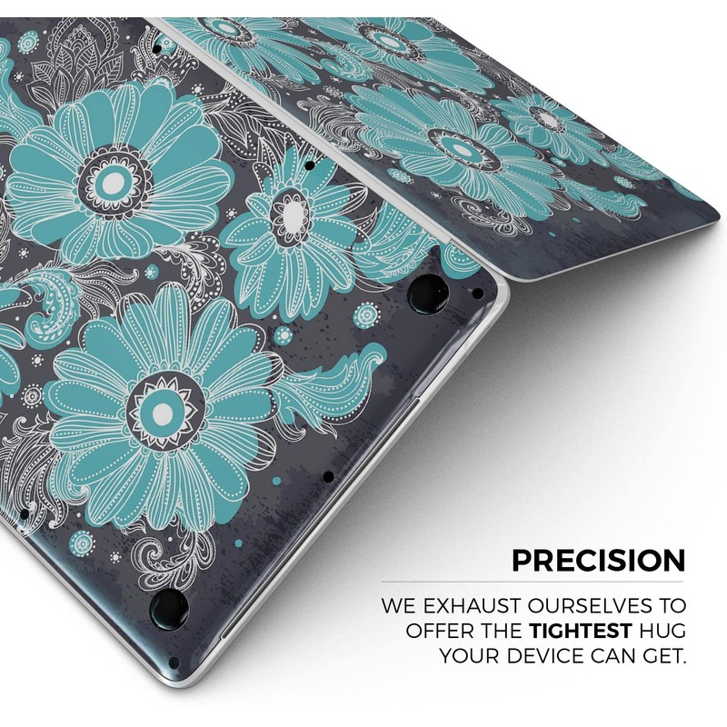Design Skinz Bright Blue Accented Flower Illustration Full-Body Wrap Scratch Resistant Decal Skin-Kit Compatible with MacBook 13" Pro w/TB (A1989)
