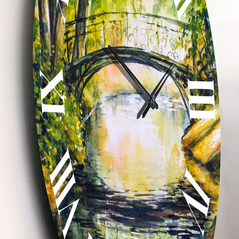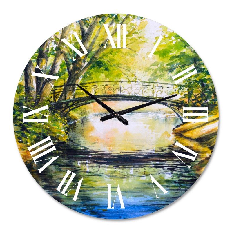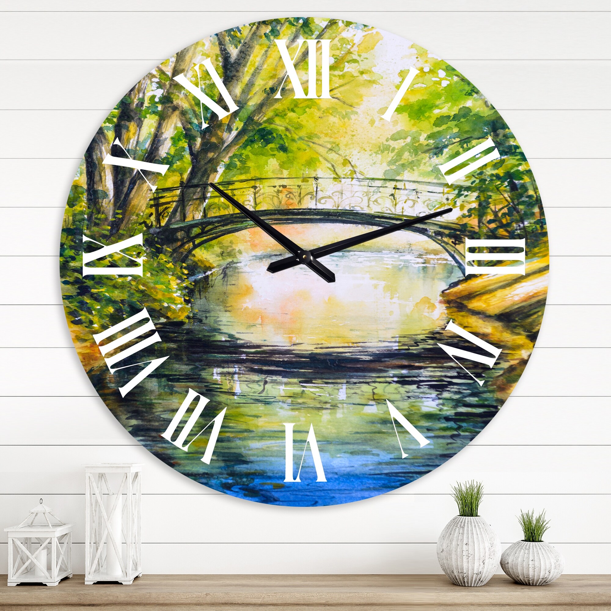 Designart 'Bridge Over Troubled Water In Forest Park' Lake House wall clock