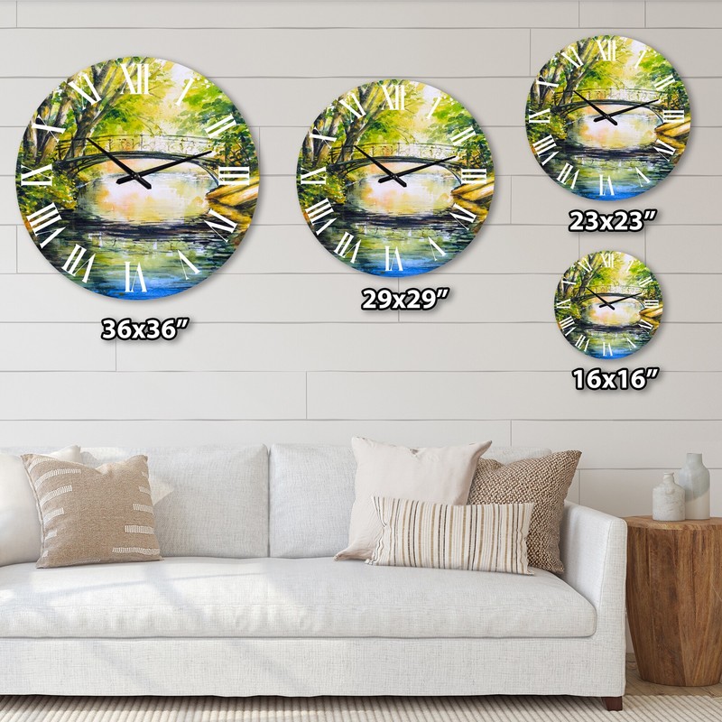 Designart 'Bridge Over Troubled Water In Forest Park' Lake House wall clock - 23 in. high, 23 In. Wide