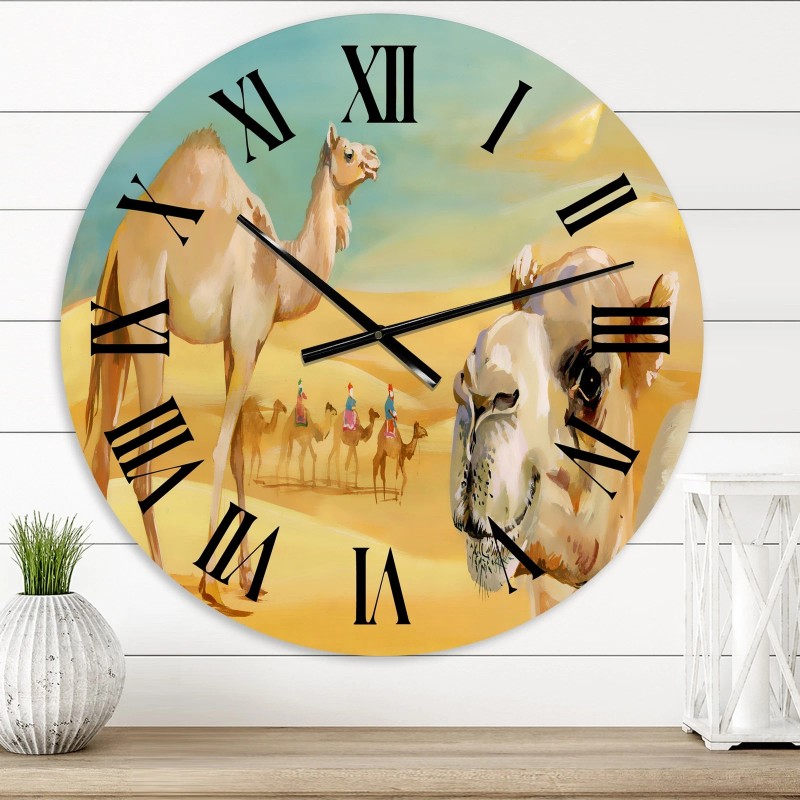 Designart 'Camels In The Desert' Farmhouse wall clock