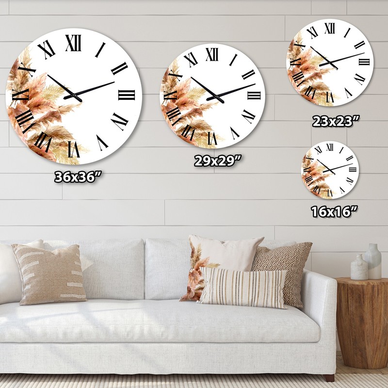 Designart 'Exotic Dry Pampas Grass' Traditional wall clock - 23 in. high, 23 In. Wide