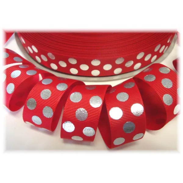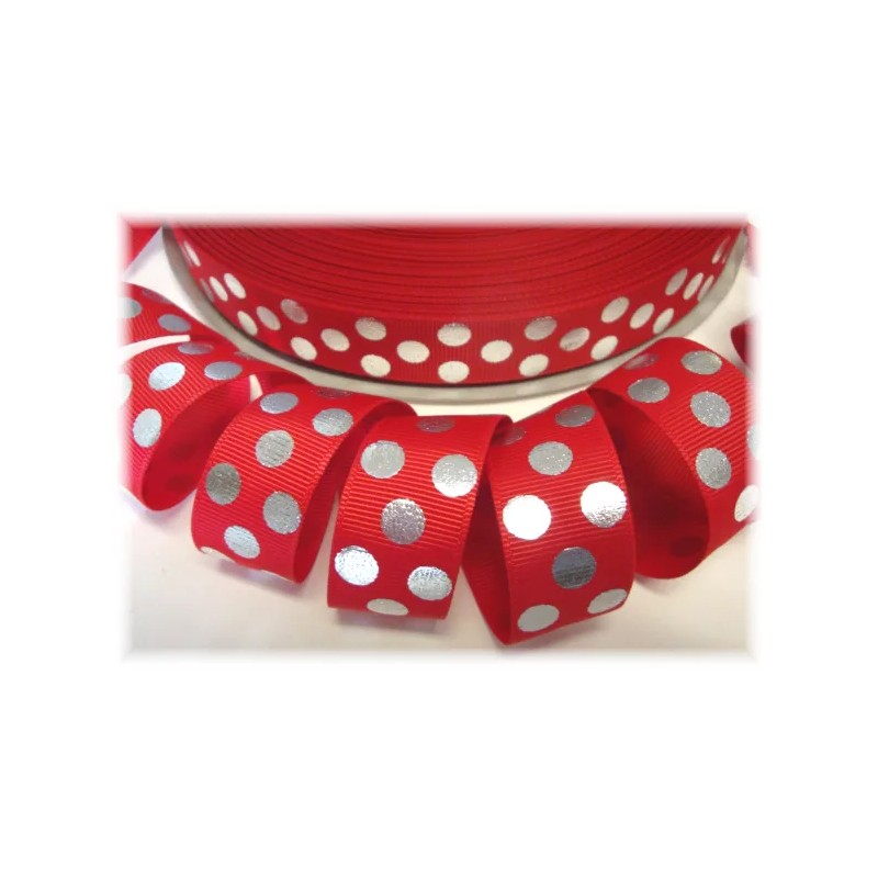 DESIGNER 7/8 VALENTINE CHRISTMAS RED SILVERMETALLIC DOT CHEER GROSGRAIN RIBBON