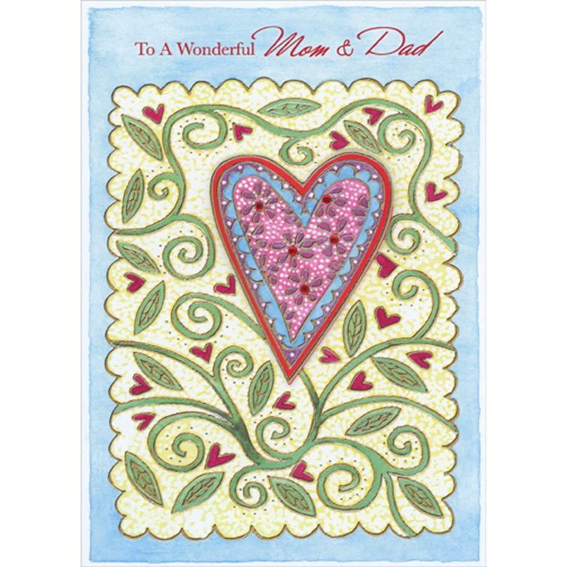 Designer Greetings Ornate 3D Tip On Heart Surrounded by Vines Hand Decorated Valentine's Day Card for Mom and Dad