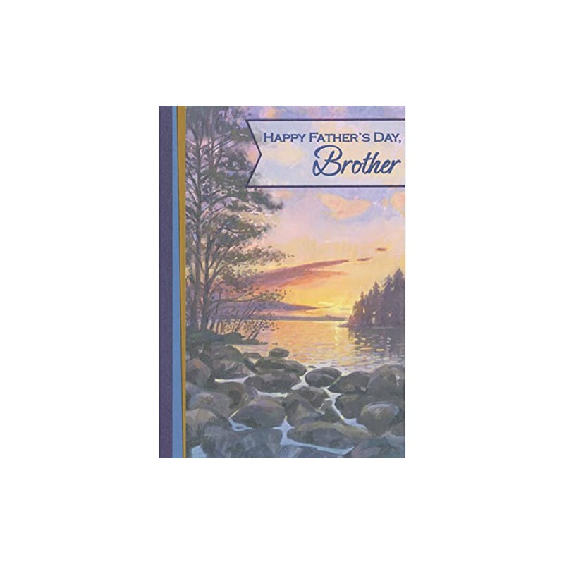 Designer Greetings Rocks, Trees and Evergreens Along Lake Shore Under Pink and Orange Sky Father's Day Card for Brother
