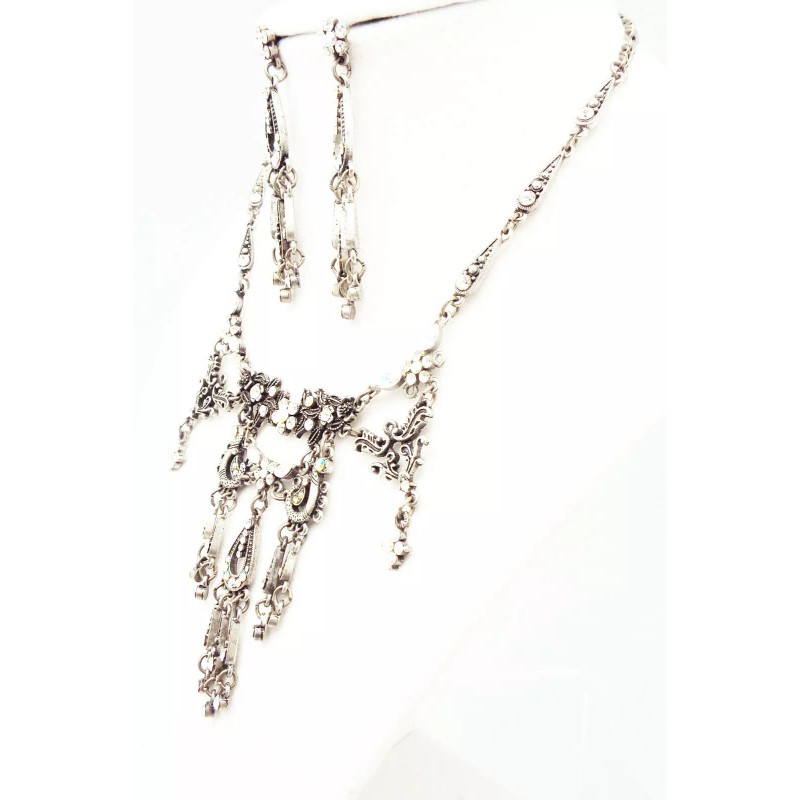 Victorian Chandelier Necklace and Earrings Jewelry Set.