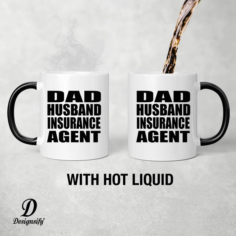 Designsify Gifts, Dad Husband Insurance Agent, 11oz Color Changing Mug Ceramic Heat Sensitive Magic Tea-Cup, for Birthday Anniversary Mom Dad Parents Fathers Mothers Day Party, to Men Women Him Her