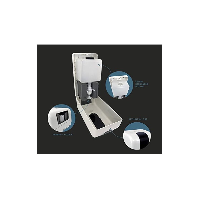 - ✅ INCLUDED: The dispenser comes with a desktop stand, special key for opening the dispenser, 1200ML capacity reservoir, and a touchless sensor. Does NOT INCLUDED type C batteries.