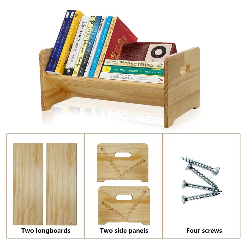 - Easy Assembly & Multi-Use - Includes two longboards, two side panels, and four screws for quick setup. Works as both a desk shelf organizer for office supplies and a small book rack for novels, textbooks, or magazines.