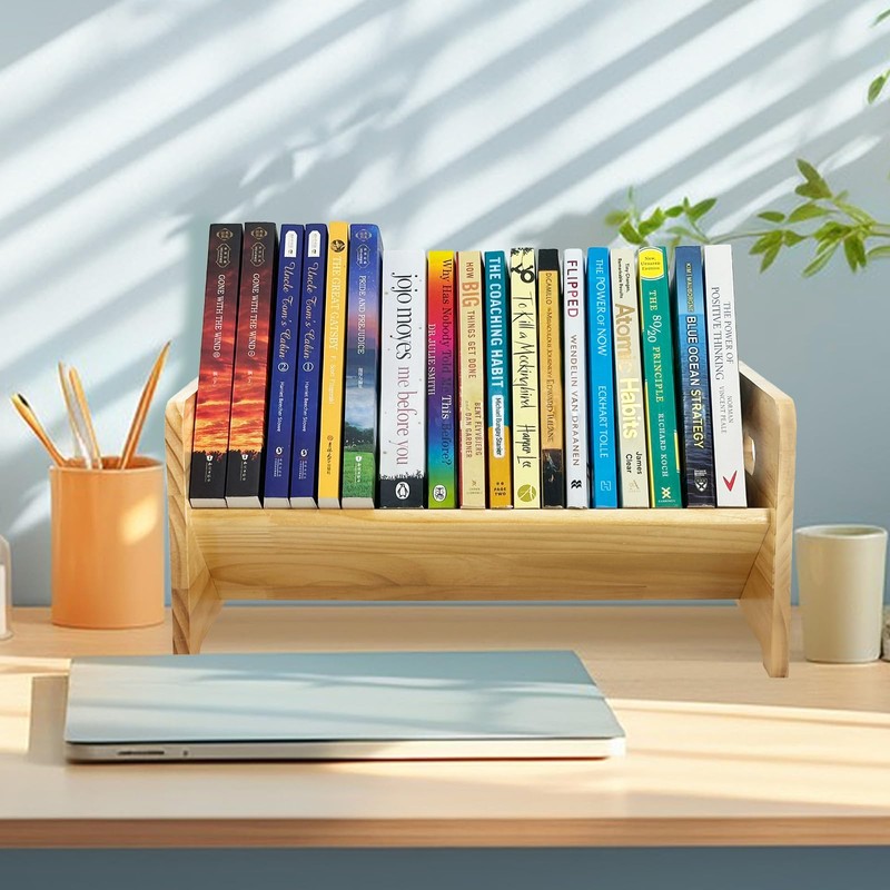 - Sturdy Wooden Construction - Made from durable wood with a fashion & sturdy frame, this desk bookshelf holder features a tilting design for easy access to your favorite reads while maintaining stability.