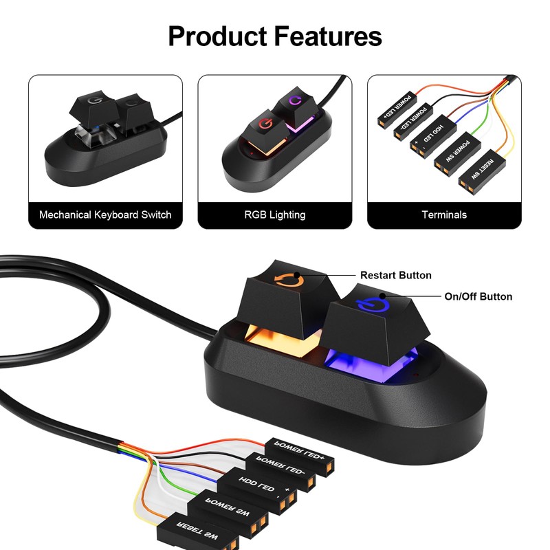 - Easy Installation The desktop power switch is very easy to install. You can easily connect the cable connections such as POWER LED+, POWER LED, POWER SW, RESET SW and HDD LED± to the motherboard port. Then stick the double-sided tape on the back of the controller to the place where you want to control your PC remotely.