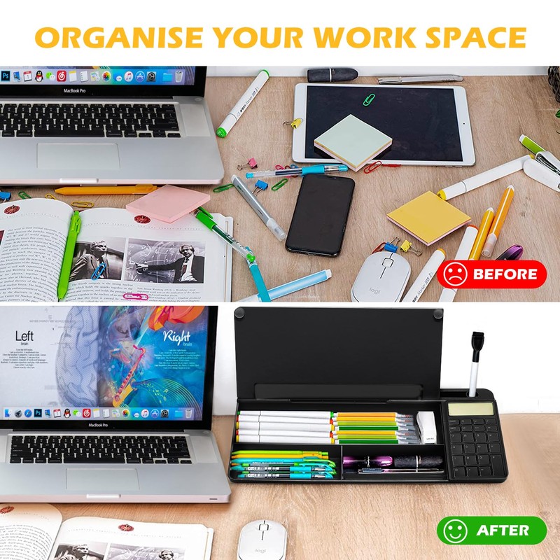 - ✅【MULTIFUNCTIONAL DESKTOP BOARD】:Our modern desktop gadget combines writing, organizer, built-in mirror, calculation and ruler as one, which can be used as a notepad, desktop organizer, calculator, ipad/pen/cell phone holder or computer pad keyboard holder. Our desktop whiteboard is a multifunctional office partner that can meet all your office needs. Try it out!
