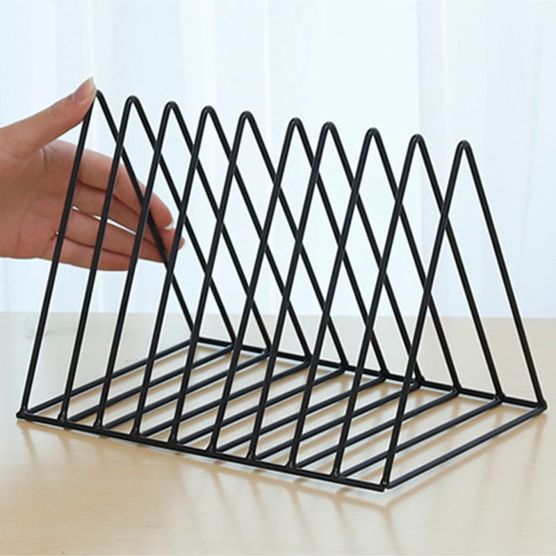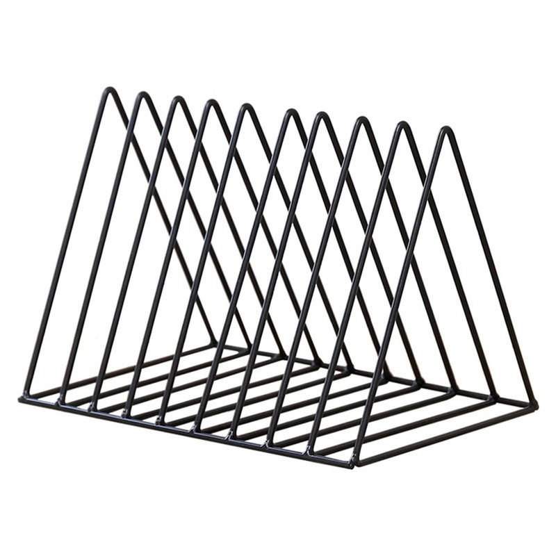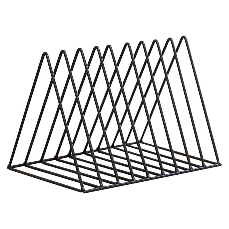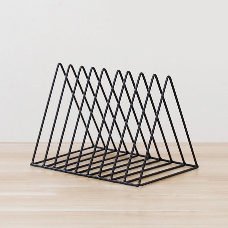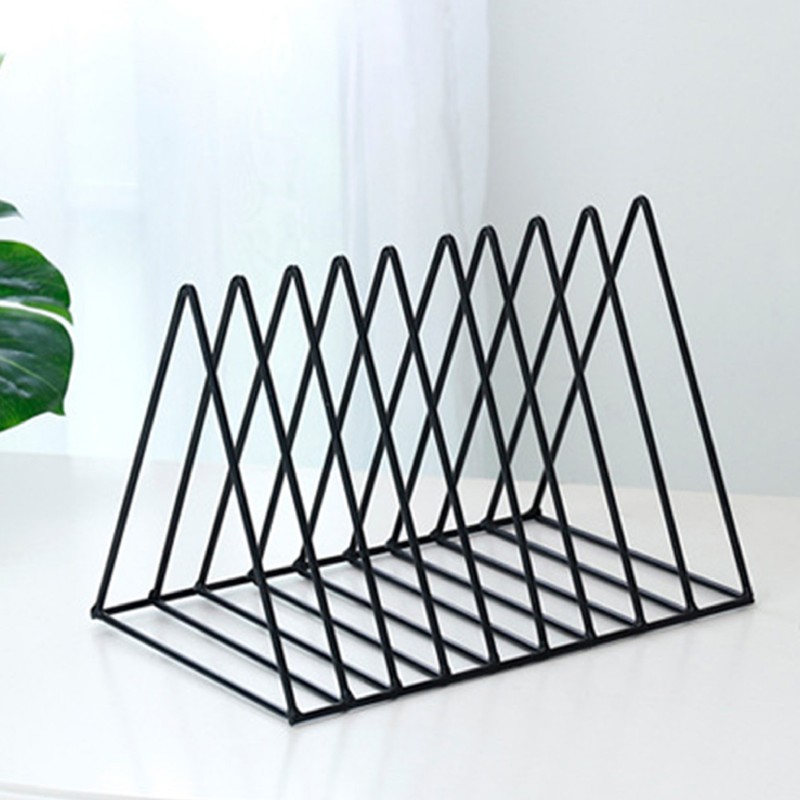 Desktop Organizer Rack Rustproof Simple Triangle Geometric Iron File Holder Decoration for Office Study Living Room Black