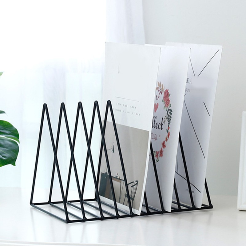 Desktop Organizer Rack Rustproof Simple Triangle Geometric Iron File Holder D...