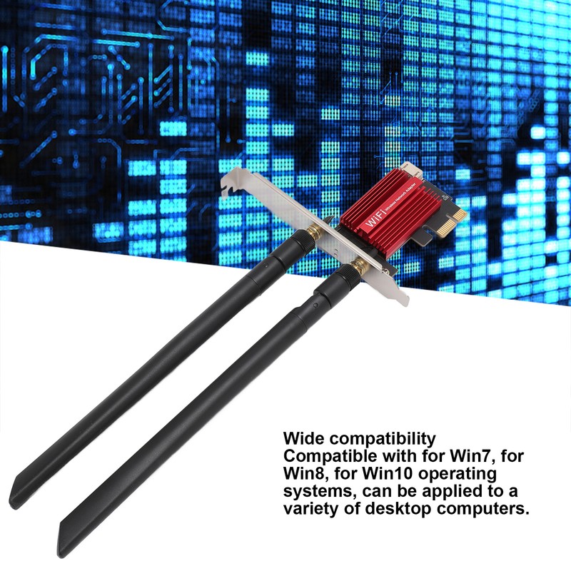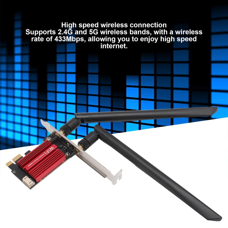 1、HIGH SPEED WIRELESS CONNECTION: Supports 2.4G and 5G wireless bands with a wireless rate of 433Mbps, allowing you to enjoy high speed internet. 2、BLUETOOTH 4.2 TECHNOLOGY: Built in Bluetooth 4.2 module makes your device more convenient to connect to other Bluetooth devices. 3、WIDE COMPATIBILITY: Compatible with for Win7, for Win8, for Win10 operating systems, can be applied to various desktops. 4、STABLE AND RELIABLE: Adopts PCIEx1 interface to ensure reliable connection and stable transmission speed. 5、SIMPLE INSTALLATION: Easily add wireless network function to your device with simple installation program and operation.