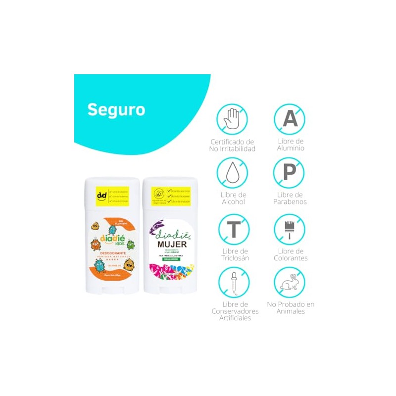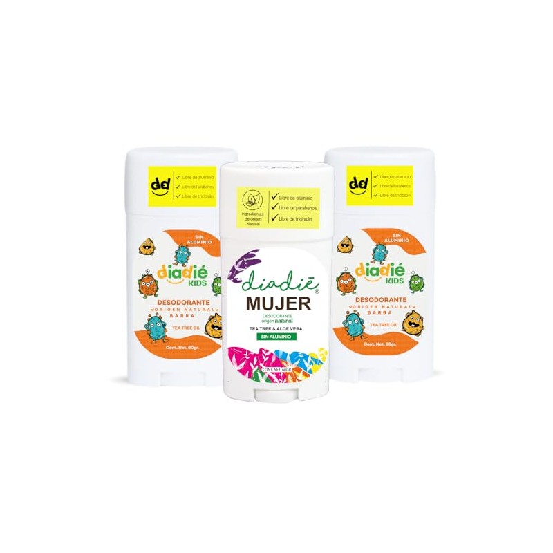 Desodorante natural. 3pack, familiar. Elimina mal olor. Activos naturales. Proteccion 24hrs. kids, mujer. No tapa los poros, Diadie, Diadie kids