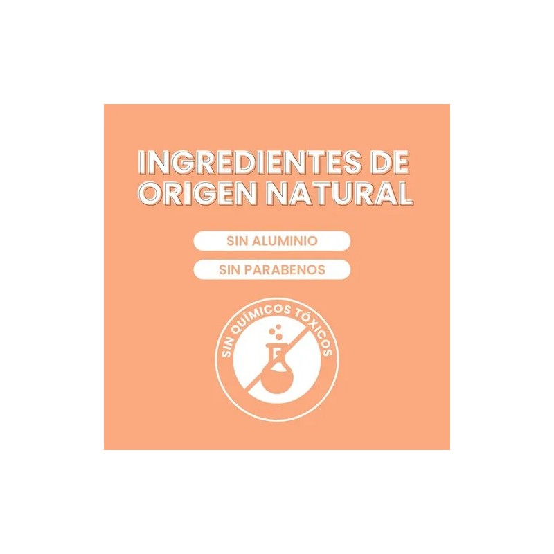 SIN ALUMINIO. A diferencia de otros desodorantes que irritan o tapan los poros, nuestra gran ventaja es que no tapa los poros por ser natural, además tiene magnesio y mantequilla de Karité por lo que tu piel se va a mantener hidratada y humectada.