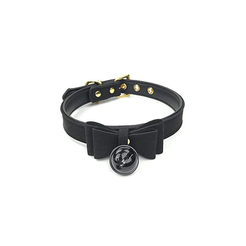 - ✅ FEATURE: Black bell bow choker collar necklace with six gold holes for adjustment