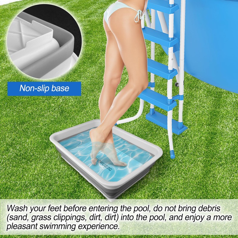 - 【Pool Foot Bath Basin】Pool foot bath provide a way to clean your feet before entering the pool or hot tub. Before swimming in the pool, please clean the grass clippings, sand and other debris on your feet out of the pool to prevent them from polluting the water and keep the water clean!