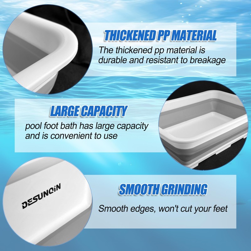 Desunqin Pool Foot Bath Tray for Swimming Pool, Large Collapsible Foot Bath for Pool, Portable Foot Tub for Pool with Non- Slip Bottom for Above Ground Pool Accessories, Rinse Feet Keep Pool Clean