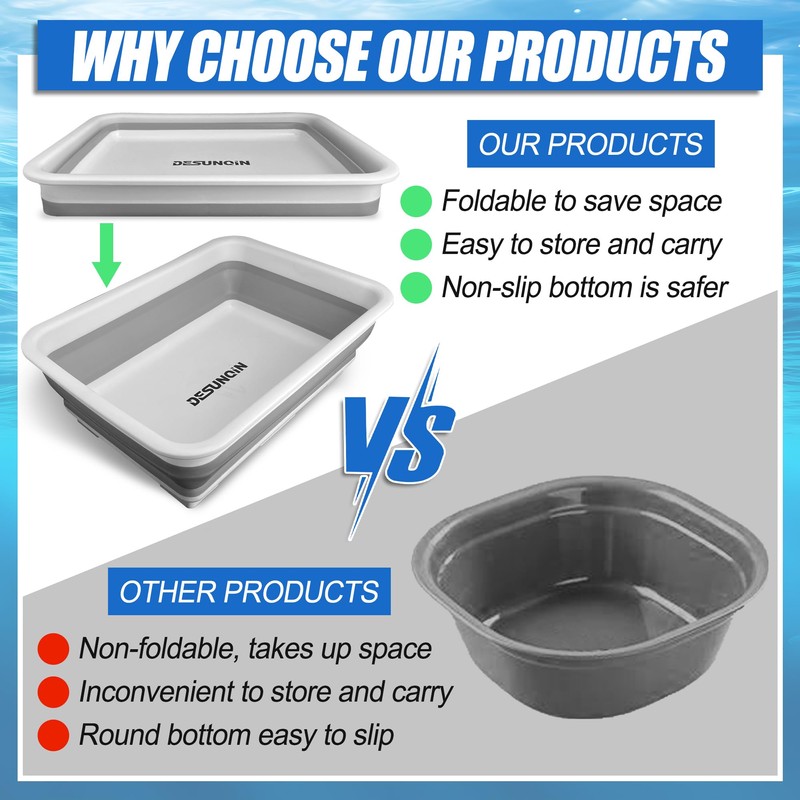 - 【Large Capacity】Foot bath basin unfold size: 14.5" x 10.5" x 4.5" , fold size: 14.5" x 10.5" x 2" , just pull up to fully extend the sides, push down to flat10 it and you can take it to the beach, pool party or any outdoor activity where you might need to wash your feet before going into the water.