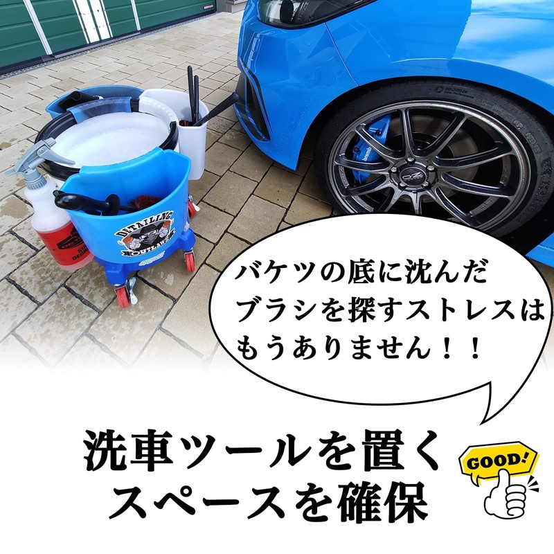 - Over 40,000 sold items. German Buccanizer: An external bucket organizer that is preferred by car detailers around the world. Store your detailing accessories compact and convenient, and greatly improve your car wash efficiency. You can easily access the right tools and avoid the trouble of placing them around. You can also relieve the stress of searching for a brush that is submerged in the bucket