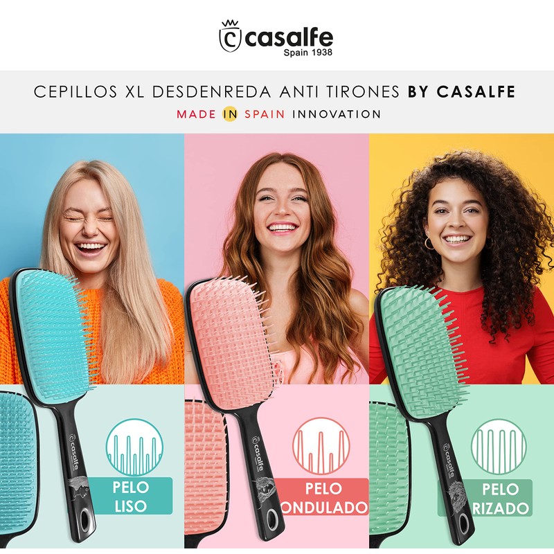 - 360º PINS WITHOUT ARISTS: Its 360º barbs without edges facilitate the brushing of the hair without damaging it and above all, makes the hair not break or snagging.