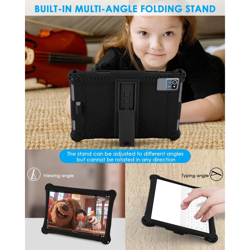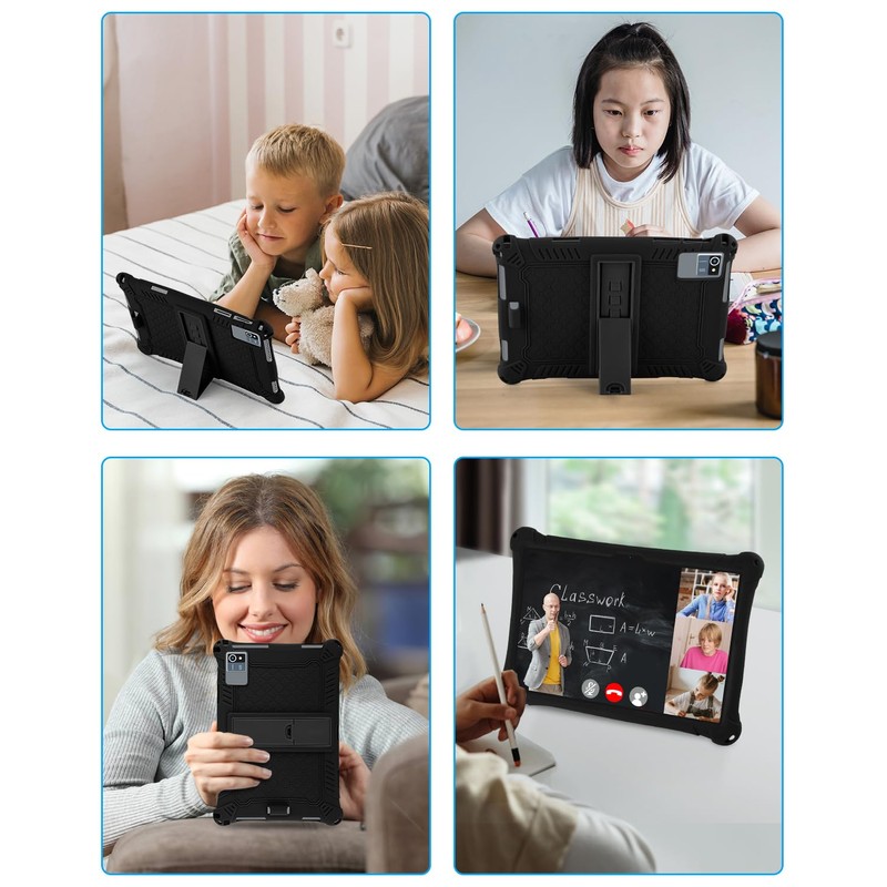 DETUOSI Okaysea 10.1 inch Silicone Tablet Case with Stylus Pen & Shoulder Strap, Moderness 10.1" Case, Soft Portable Protective Cover for QunyiCO 10.1, Azeyou Tab 6 10 inch, Black