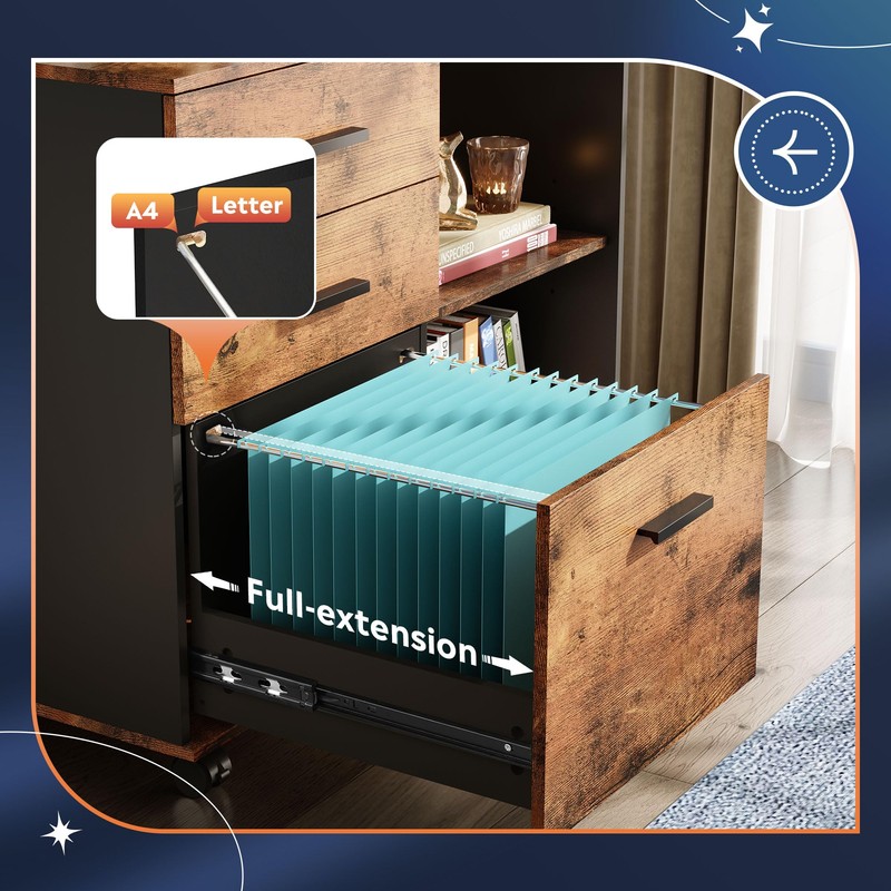 - 3 DRAWERS & LARGE OPEN STORAGE: 2 top small drawers provide plenty of storage space for small items. Bottom drawer keeps hanging letter, A4 size files organized and extends fully for easy access.