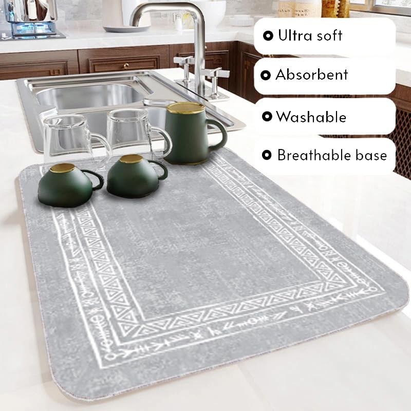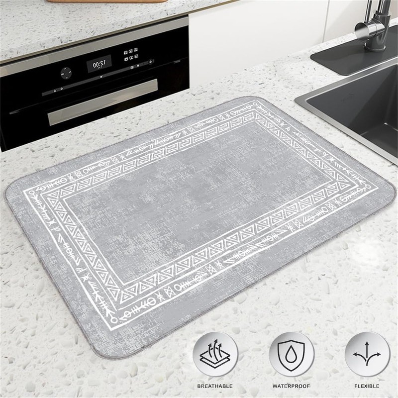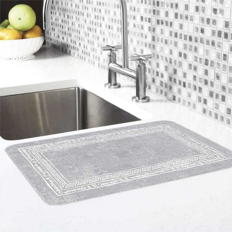 DEVBEST Dish Drying Mat - Ultra Absorbent Dish Drying Mats - Machine Washable and Super Fast Drying - Practical Solution for Efficiently Drying Dishes - 15,7 by 19,6 Inches (Gray Ethnic)
