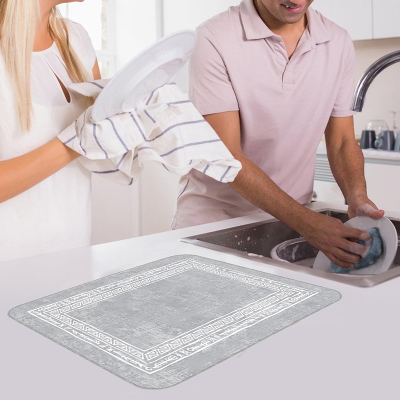- Provide Perfect Dryness with Superior Water Absorption Capacity: Thanks to its specially designed material, our Dish mats effectively absorb and evaporate the water droplets remaining on your dishes. Thus, it dries your dishes quickly and prevents puddles on your kitchen counter. This feature helps you to create a clean environment and contributes to the long-lasting protection of the countertop.