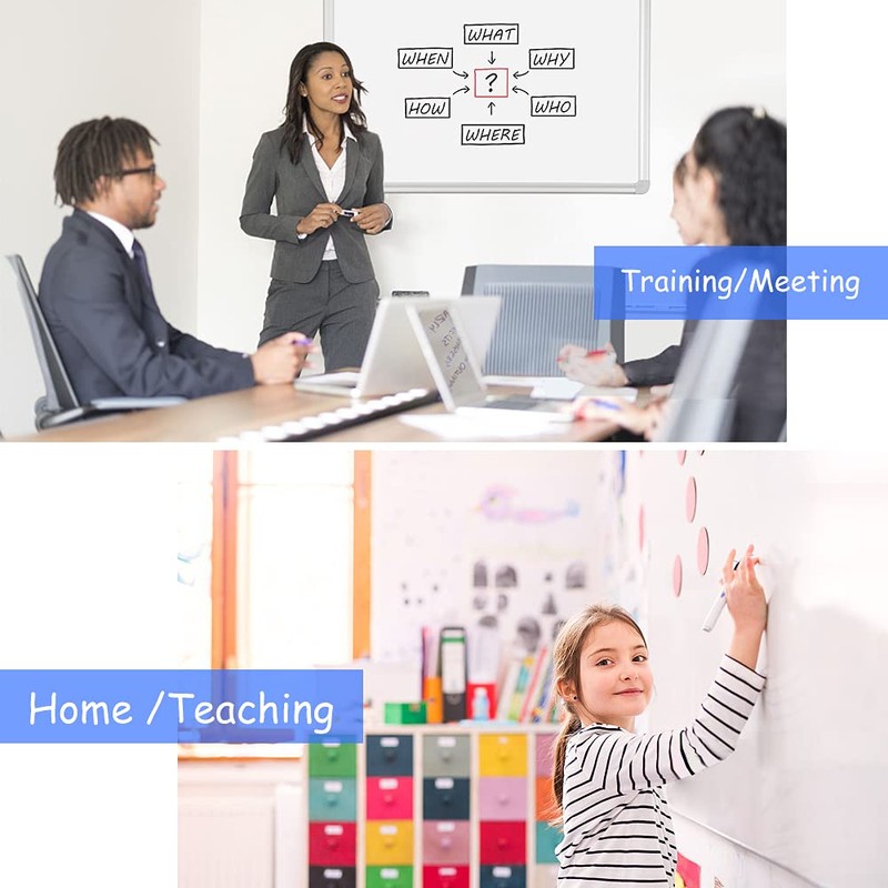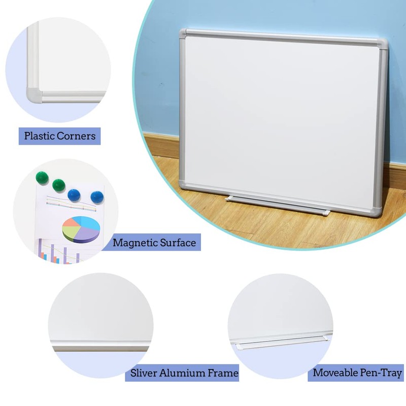 - Our whiteboard is great for office home and classroom. Including markers magnets eraser and detachable marker tray.