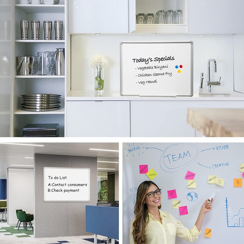 - 60 X 36 Inches large smooth & durable writing surface. Easily dry wipe with all dry-erase markers, never stains or ghosts.