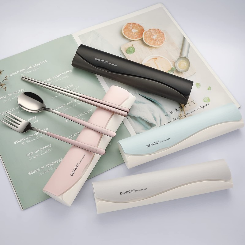 - PORTABLE UTENSIL CASE: Smooth shape, comfortable grip without cutting the hand. The double-open design of the lid, unique and elegant. Embedded buckle, lock the reusable silverware without shaking and reduce noise. Available in multiple colors, beautiful and portable